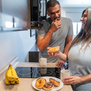 To maintain the highest standards of cleanliness and to help manage your costs, we encourage you to bring your favorite cookware and dishes. For your convenience, pots, pans, dishes, and utensils are also available for purchase at My Store located in our lobby. This approach supports our philosophy of charging only for the amenities you use, ensuring a customizable and cost‑effective stay.