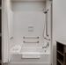 This mobility room offers a spacious layout with wide doorways, an adjustable showerhead, an accessible kitchen, and more for additional convivence.